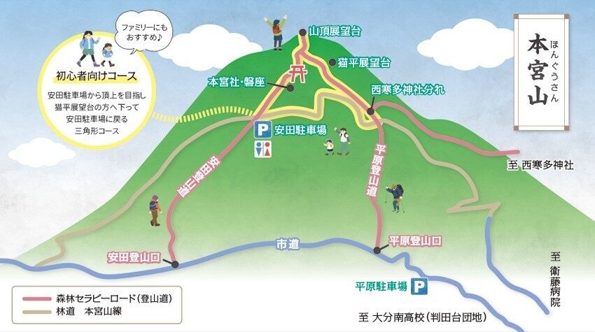 山頂等からは霊山・鶴見岳・由布岳をはじめ、